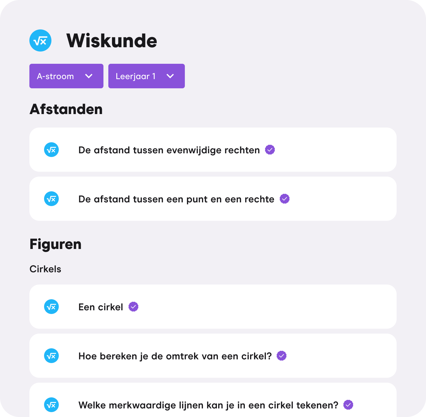 Speciaal voor het 1ste middelbaar: oefen gericht wiskunde, Frans en Nederlands. Pak de onderwerpen die je lastig vindt aan, en schakel AI-tutor Guido in zodra je hulp nodig hebt.