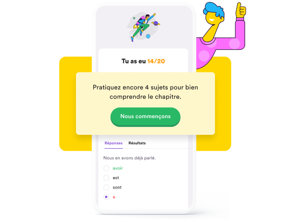 La meilleure façon de vérifier si tu maîtrises bien ta leçon ? Fais un test d’entraînement ! Sur StudyGo, tu peux passer des tests par chapitre selon ton manuel scolaire. Cela t’aide à savoir ce que tu maîtrises déjà et ce qu’il te reste à revoir pour obtenir de meilleures notes.
