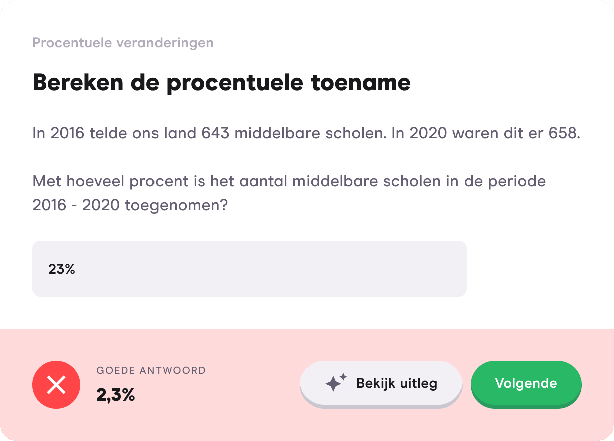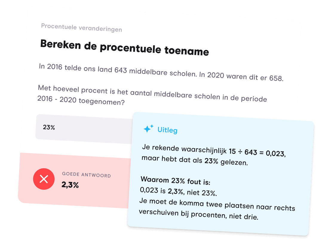 Begrijp hoe een antwoord tot stand komt met uitleg die stap voor stap laat zien wat er gebeurt. Met AI-uitleg die klopt, begrijp je niet alleen het antwoord, maar ook hoe je het de volgende keer zelf kunt toepassen.