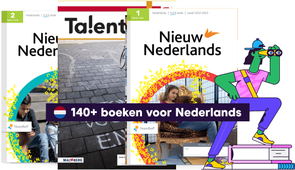 Alle stof van StudyGo is aangesloten op het Nederlands lesboek van Nieuw NederlandsTalent en Op niveau. Geschikt voor alle leerjaren van vmbo-t, havo en vwo. Staat jouw boek er niet tussen, dan vraag je het eenvoudig aan via het platform.